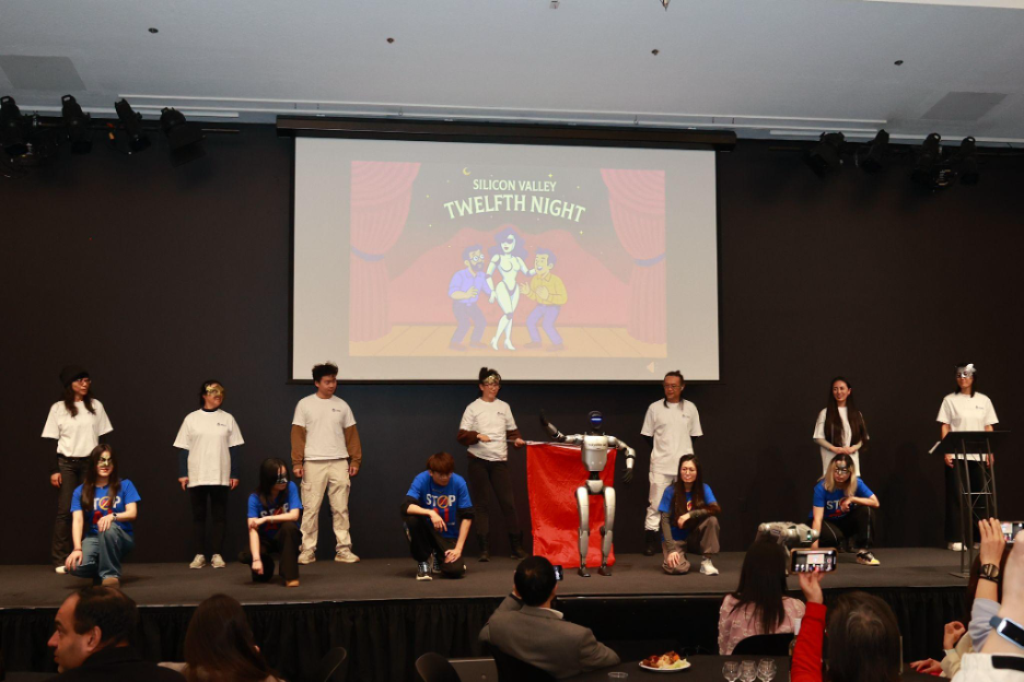 在 VIP 晚宴环节,宇树机器人与真人舞者同台共舞,成为本届大会最生动的画面之一。